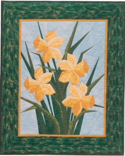 Spring blooms come to life in this foundation pieced Daffodil pattern. Master pattern and one printed foundation are included in this 28” x 34” pattern.